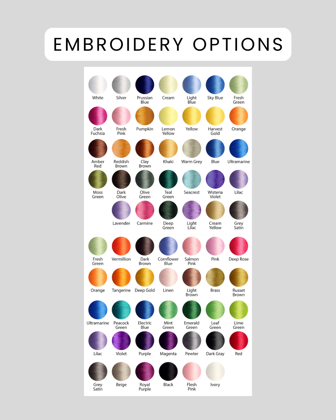 - What color embroidery you want.